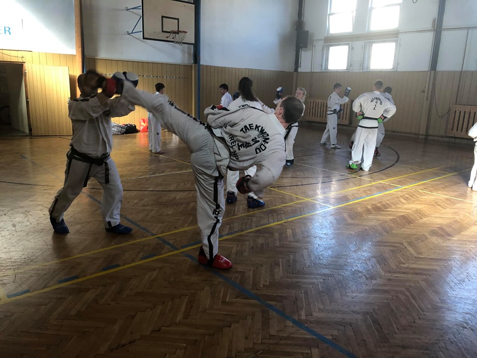 The level of the competition itself was outstanding, with many incredibly skilled participants in all categories. The standard was high across the board; and while watching the patterns competitors we thought many people there would easily be able to compete for World medals! Several world class competitors were there such as Ekaterina Kozlachova and Bartosz Slodowski, and we even got to meet the Polish team. Everyone was very friendly and helpful, some going as far as lending us spare footpads for Michael after we realised he didn’t have them, 10 minutes before the start of his fight…