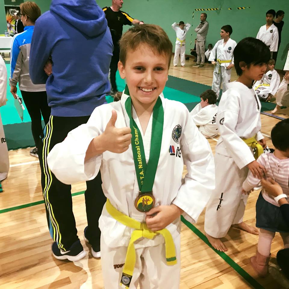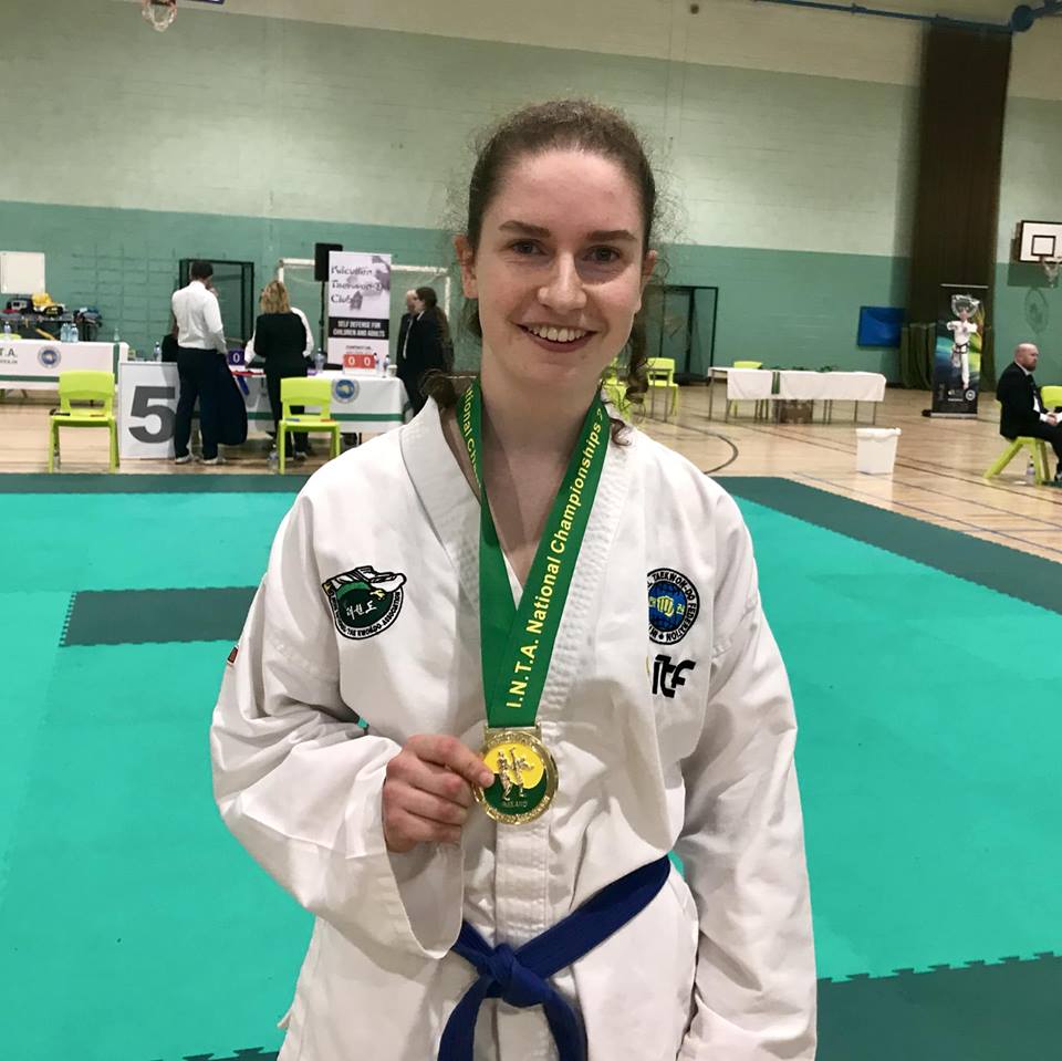 Deirdre earned Gold in both sparring and blue belt patterns, with a dominant performance and unanimous decision in both her fights. She also demonstrated excellence through several rounds of patterns!